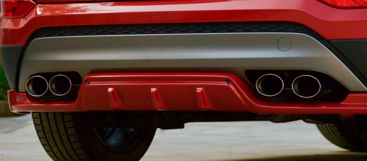 Крім накладок на пороги і бампери, Hyundai Tucson Sport виділяється темними 19–дюймовими колесами і роздвоєним вихлопом.