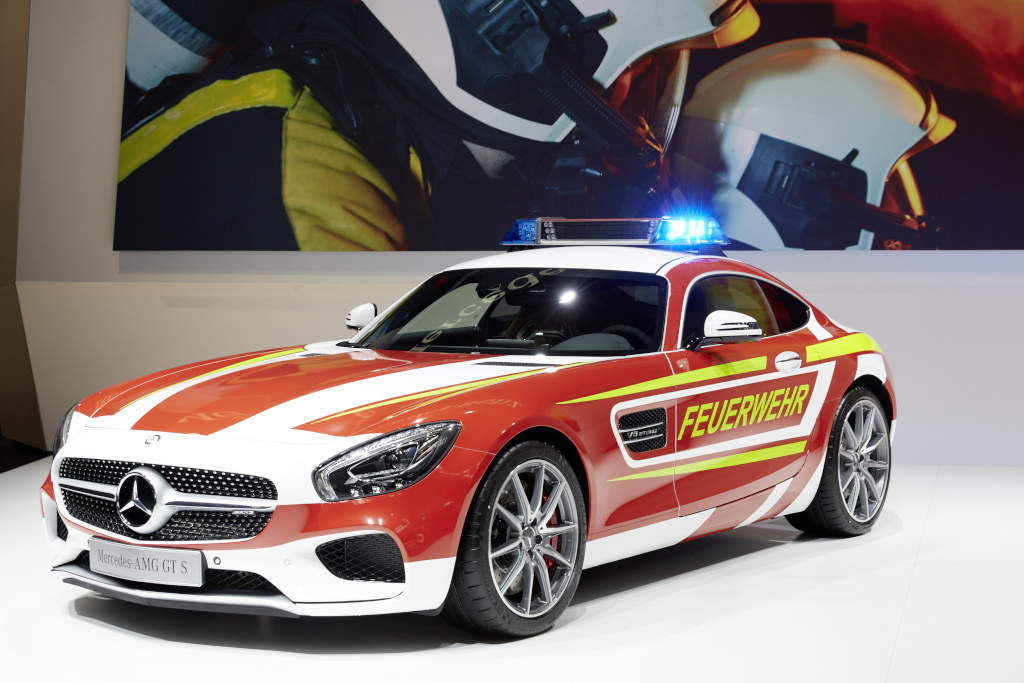 Самый быстрый в мире пожарный автомобиль на выставке Interschutz 2015 был на стенде Mercedes-Benz. Кто бы мог подумать, что в его роли выступит суперкар AMG GT в самой мощной версии S, продажи которой стартовали только несколько недель назад. В отличие от обычного GT, мотор которого развивает «всего» 462 л.с., «эска» оснащается битурбированной «восьмеркой» на 510 «лошадок». Максимальный крутящий момент составляет 650 Нм. С мотором агрегатируется 7-ступеняатая автоматическая трансмиссия AMG Speedshift DCT.