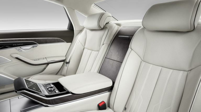 В інтер’єрі авто панують сенсорні дисплеї. Відтепер у Audi A8 віртуальна панель приладів і одразу два тачскріни (на 10,1 і 8,6 дюйма) на центральній панелі. Мультимедійна система здатна розпізнавати накреслені пальцем слова.