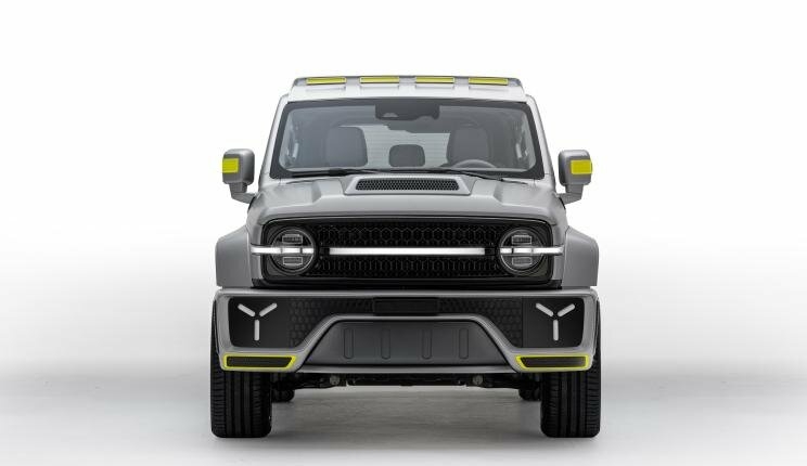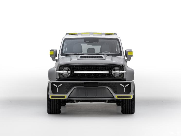 Новинка получила название Cybertank. Она основана на базе рамного внедорожника WEY Tank 300, но получила более совершенную внешность. От донора китайский внедорожник отличается завышенной линией крыши, что было достигнуто благодаря установке пластиковой накладки, массивными бамперами, широкими колесными арками, капотом с крупным воздухозаборником, широкими порогами и дополнительной светотехникой.