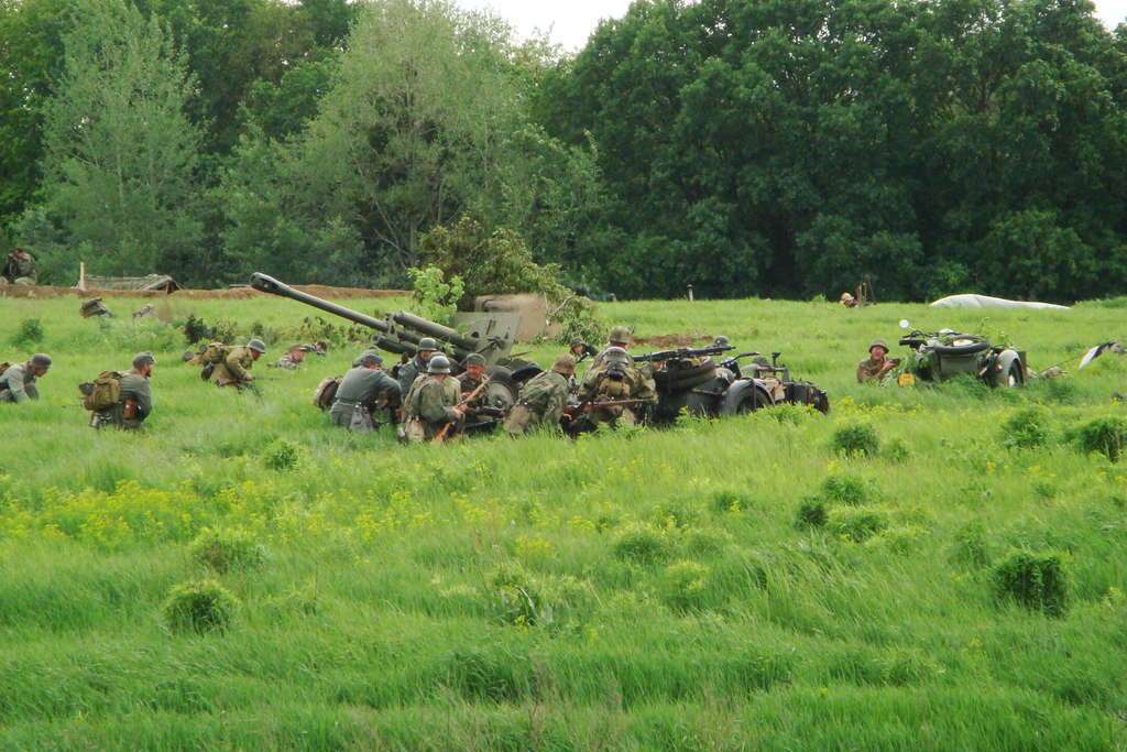 Самыми яркими и редкими представителями автопрома были трехосный Henschel 33D1, самый массовый автомобиль вермахта VW Type 82 Kübelwagen, Citroen Т-23. Как и настоящие боевые действия Великой Отечественной войны, данное мероприятие не обошлось без трудяг ГАЗ-ММ, ГАЗ-67, БА-64, мотоциклов, полковых и дивизионных пушек калибра 45 и 76 миллиметров соответственно, и конечно легендарных Т-34. С воздуха поле боя атаковала авиация и десантники. В этот раз зрителей было «хоть отбавляй», большинство с детьми, что не может не радовать. Это говорит о том, что с патриотическим воспитанием подрастающего поколения будет все в порядке.