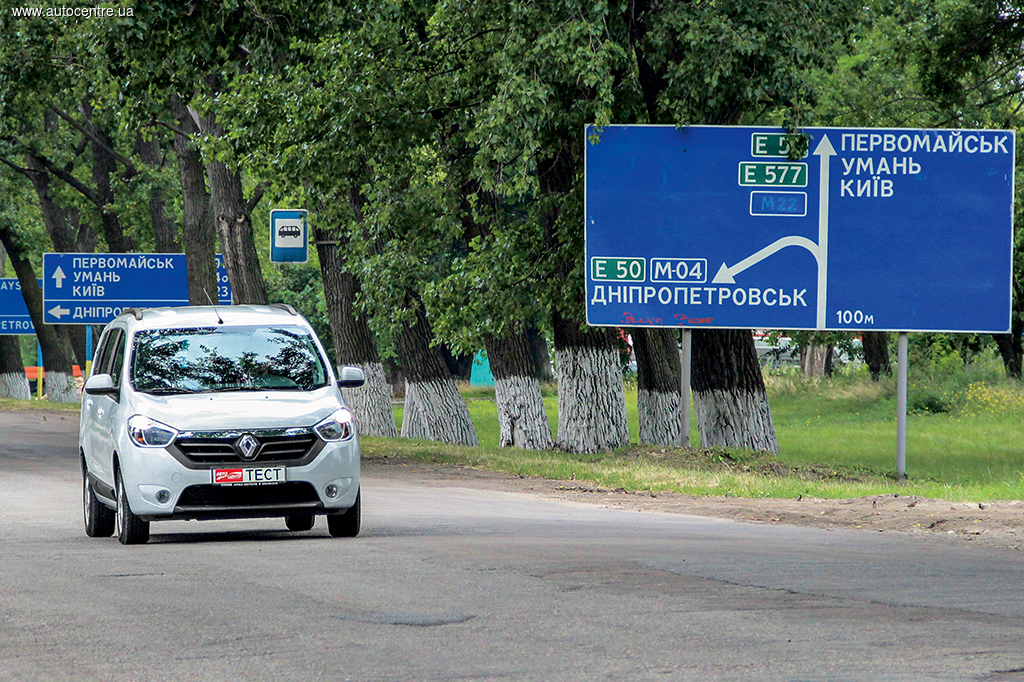 Наш большой и даже величественный, как белая яхта, компактвен Renault Lodgy просто просился в дальнюю дорогу: вместительный кузов, экономичный дизельный мотор, энергоемкая ходовая. Но, усложняя задачу, мы выбрали маршрут посуровее – по трассе М04 Киев – Днепропетровск – Изварино, поколесив территориями Киевской, Черкасской и Кировоградской областей. Дороги страны сейчас не в самом лучшем состоянии, и эта – не исключение: заплаты, ямы, волны, трещины…