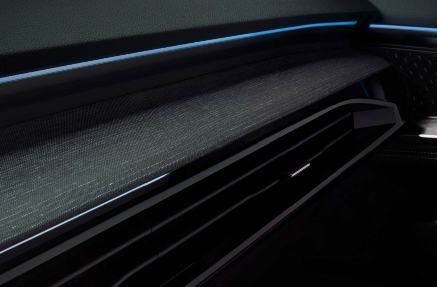 На свежей порции тизерных снимков вновь показали салон Рено Астрал. На затемненных фото видна передняя панель, отделанная высококлассной тканью, и фоновая подсветка, которая переходит на дверные карты. Также в отделке использованы вставки из натурального дерева. Они выполнены в японской технике маки-э, подчеркивающей естественную структуру древесины.