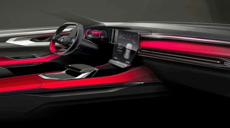 На предыдущих рендерах было раскрыто оснащение кабины. Оно включает цифровую приборную панель и мультимедийную систему, экраны которых объединены в единый блок, создавая L-образный водительский интерфейс размером 24,3 дюйма. Аналогичное решение реализовано в новом Megane E-Tech Electric. В компании подчеркнули, что хотят сделать новинку престижнее соплатформенного Nissan Qashqai.