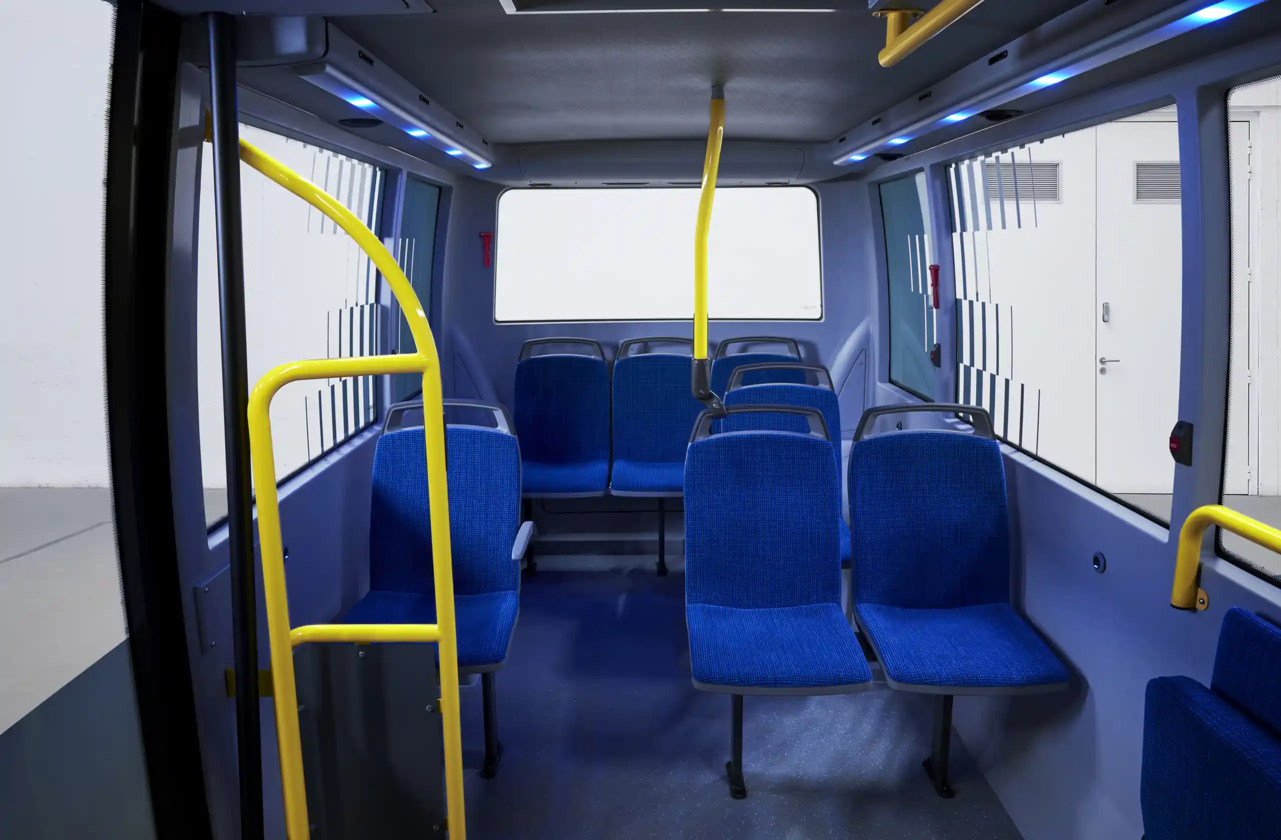 А стосовно автобуса з низьким входом, то його салон розрахований на 15 пасажирів (9 місць для сидіння) і пристосований для перевезення людей з обмеженими фізичними можливостями. Машина також обладнана водневою установкою на 30 кВт і батареєю на 33 кВт. А от запас водню вже більший — 4,5 кг (350 бар). Запас ходу збільшено до 300 км.