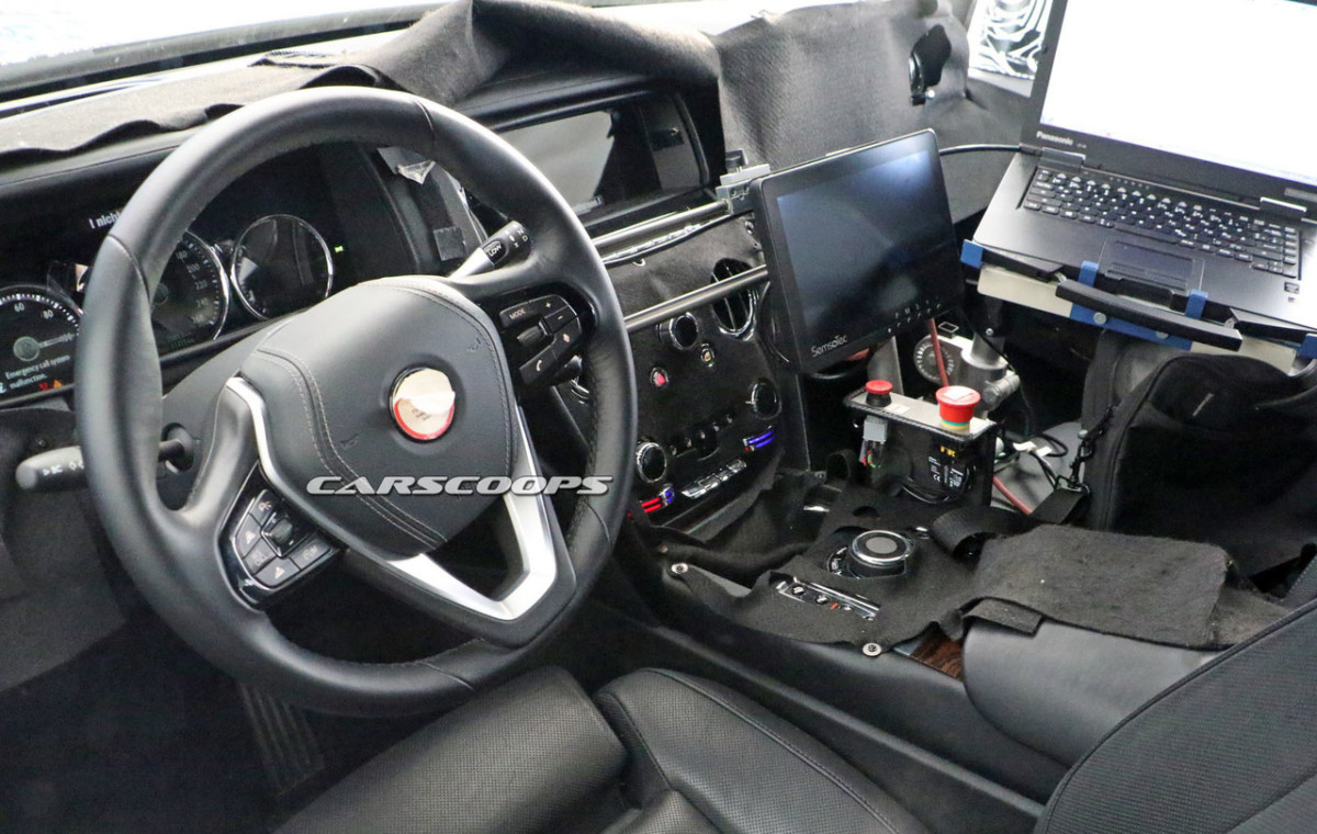 Хотя на тестовом авто часть передней панели закрыта, все же можно разглядеть отдельные детали салона. Так, виртуальная панель приборов позаимствована у Rolls-Royce Phantom 2018, а руль знаком по BMW 7 Series.