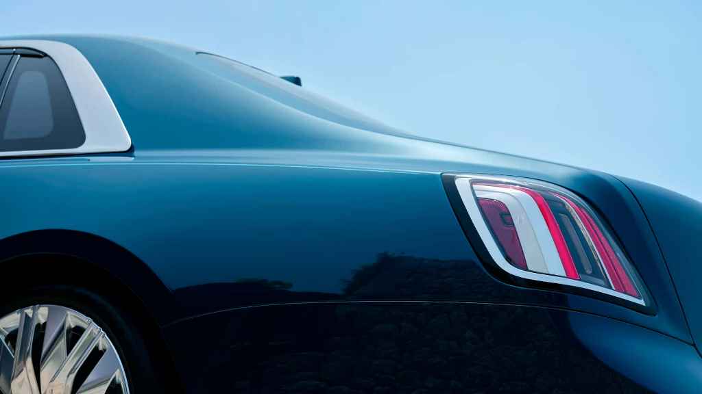Відрізнити новинку можна по переробленій решітці радіатора, яка тепер має підсвічування, фарам з новою графікою і виразними ДХО, а також бамперу з більшим повітрозабірником. Ще Ghost запропоновано новий набір задніх ліхтарів, колісні диски з особливим дизайном та ексклюзивний відтінок для кузова Mustique Blue. Втім, у покупців седана залишилася можливість вибрати будь-який колір із палітри марки, яка включає 44 тисячі відтінків.