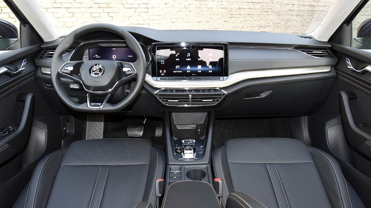 Длина – 4753 мм. В салоне новой Шкода появилась система мультимедиа с большим дисплеем диагональю 12,0-дюймов. Также в наличии проекционный дисплей, на который выводится необходимая водителю информация.