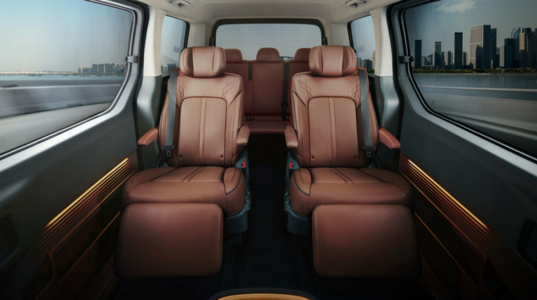 У салоні Hyundai Staria — цифрова приладова панель і система мультимедіа з 10,25-дюймовим дисплеєм. Тепер найцікавіше — компонування внутрішнього простору. Вен можна замовити з трьома або чотирма рядами сидінь в пасажирському виконанні. У дорожчій версії крісла в другому і третьому рядах окремо стоятимуть з індивідуальними підлокітниками. У базовій версії автомобіль запропонують із різною кількістю посадокових місць — від 3 до 11.