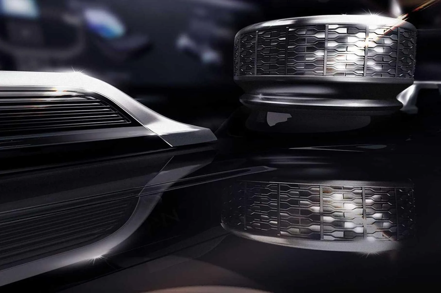 Еще одно фото (уже по традиции) демонстрирует кусочек интерьера – по всей видимости, в кадре изображена шайба, которая отвечает за работу полноприводной трансмиссии или выбор режимов движения. Обратите внимание, что производитель сделал акцент на отделке элемента, который получил структурный рисунок. Наверняка эта тема продолжится во многих декоративных элементах в салоне.