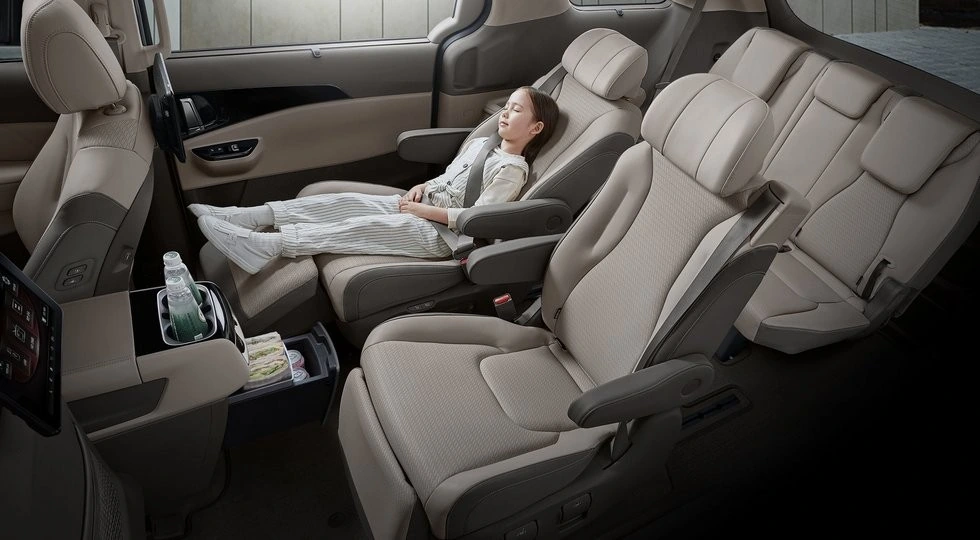 Новинка доступна в Кореї з 7-, 9 - або 11-місним салоном. У першому випадку запропоновані окремі капітанські крісла в другому ряду з спинками і підлокітниками, що регулюються. Крім того, для зручності пасажирів передбачено відкидні підставки для ніг. У задній частині центральної консолі захований 5 літровий висувний ящик.
