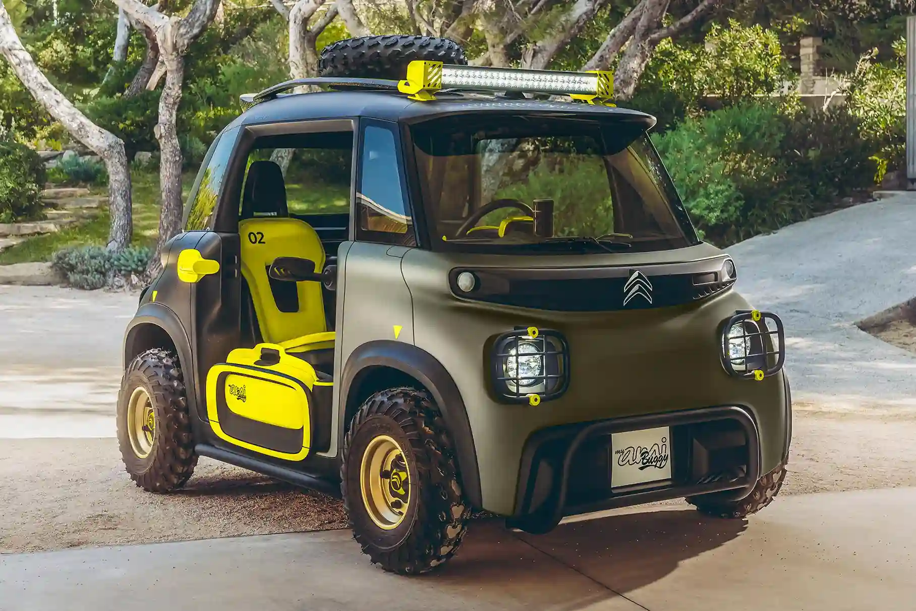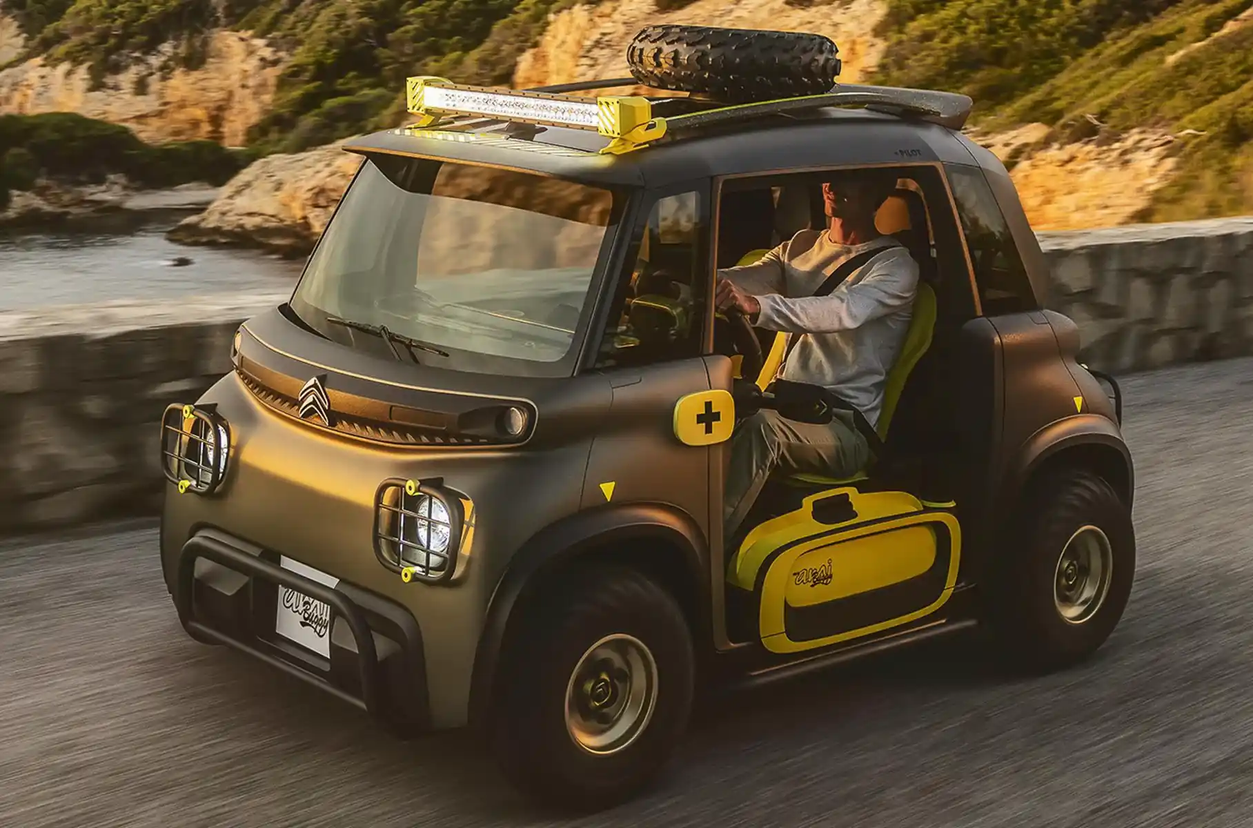 Створюючи новий концепт на базі Citroen Ami One, який коштує від 7000 євро, дизайнери намагалися зробити його максимально реалістичним. Електрокар укомплектований захисними дугами, запасним колесом на даху і величезною люстрою. Для максимальної зручності водія і пасажира кількість піни в подушках збільшено удвічі, крім того тепер вони з ефектом пам'яті. За необхідності їх можна зняти і вимити, а після встановити назад.