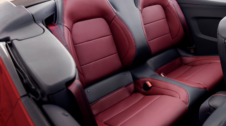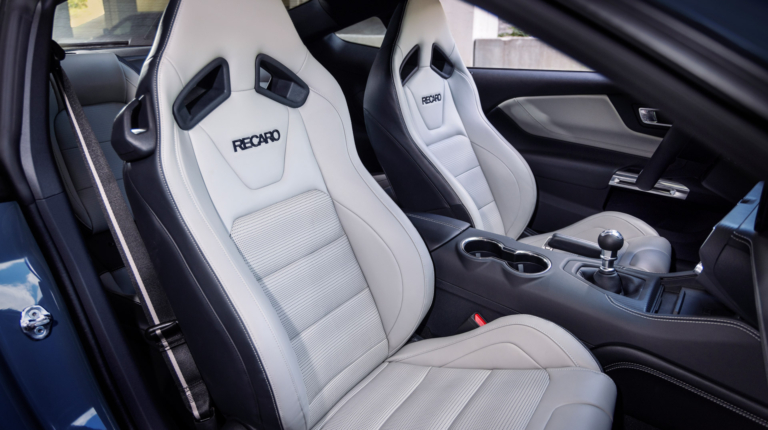 Інтер’єр культового спорткара змінився більш разюче. У його оснащення увійшов величезний вигнутий екран, який поєднує 12,4-дюймову цифрову панель приладів і 13,2-дюймову мультимедійну систему Sync 4. Остання тепер відповідає і за управління системою клімат-контролю. Також Mustang 2024 отримав нове кермо, слот для бездротової зарядки смартфона, аудіосистему B&O, адаптивний круїз-контроль і пакет систем безпеки Ford Co-Pilot360.