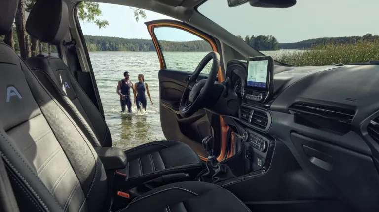 Модификация Ford EcoSport Active отличается от стандартной модели переработанной решеткой радиатора, черной пластиковой облицовкой в нижней части кузова и на колесных арках, а также контрастной крышей. Ездит кроссовер на 17-дюймовых легкосплавных дисках с Y-образным дизайном, а его дорожный просвет увеличили. Салон Ford EcoSport Active также претерпел изменения. В оснащение вошла мультимедийная система с 8-дюймовым экраном, а отделка выполнена в новой стилистике.