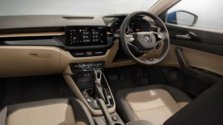 Оснащення салону седана схоже з актуальним хетчбеком Fabia. Топовий варіант отримав аналогічну цифрову приладову панель, мультимедійну систему з сенсорним екраном і підтримкою Apple CarPlay і Android Auto, камеру заднього виду, автоматичний клімат-контроль, люк з електричним приводом, систему безключового доступу і сидіння з функцією вентиляції. У базовій комплектації приладова панель аналогова, а замість клімату встановлено кондиціонер.