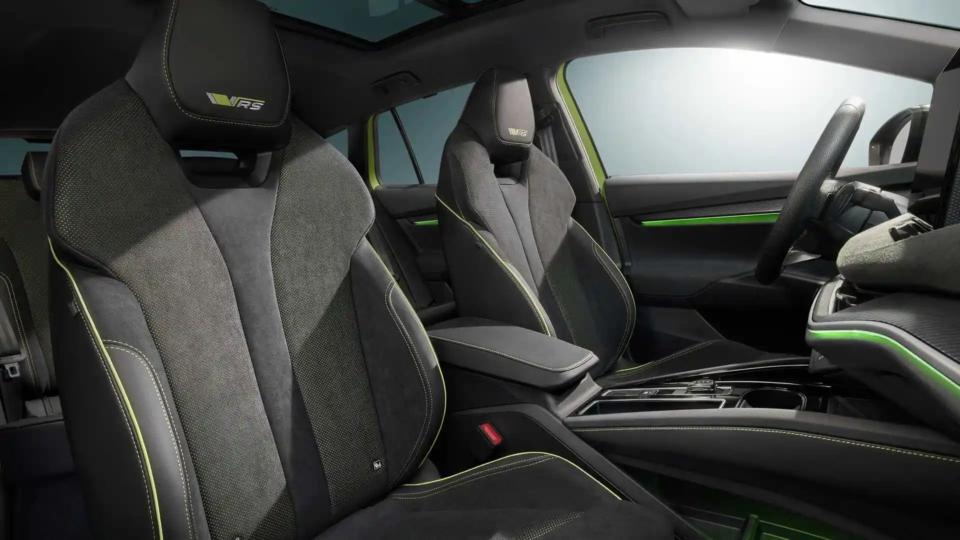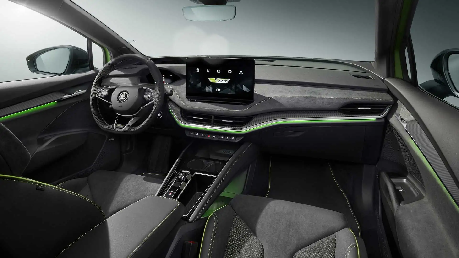 Оздоблення виконане з алькантари та висококласної шкіри, які контрастують із зеленою строчкою. Як акценти використані вставки з вуглеволокна. У оснащення включили кермо з плоским дном, тризонний клімат-контроль і збільшений до 13 дюймів екран мультимедії. У продаж Enyaq iV RS надійде на початку наступного року.