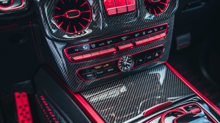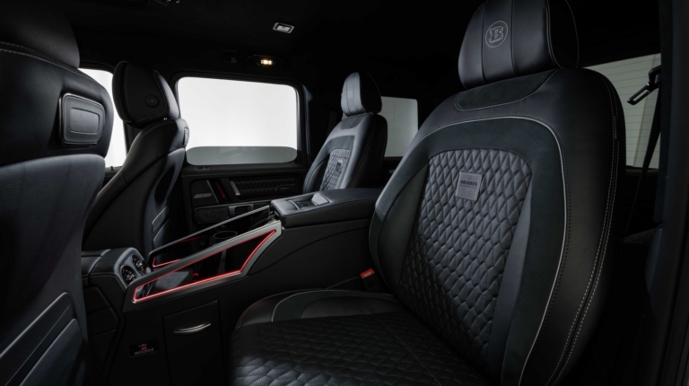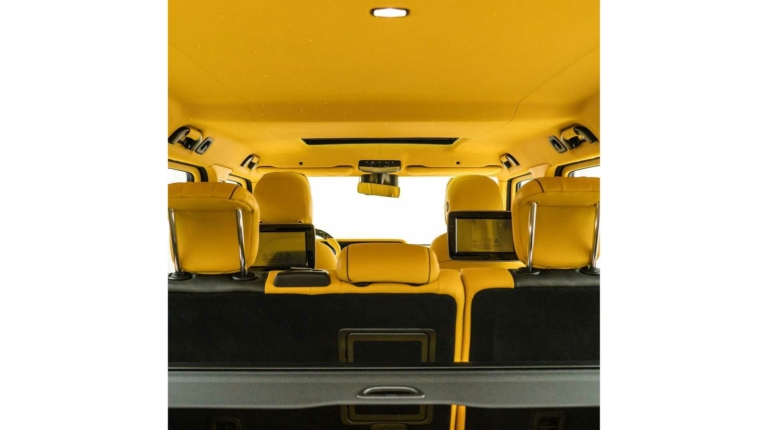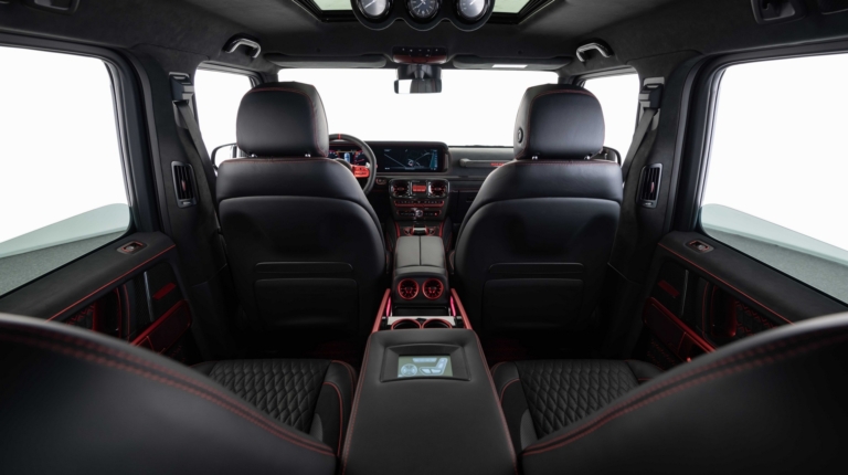 Задним пассажирам доступны выдвижные столики, два подстаканника с подогревом и вентиляцией, холодильный отсек и 4,3-дюймовая сенсорная панель управления. Но тюнер готов дополнить оснащение внедорожника по желанию заказчика.