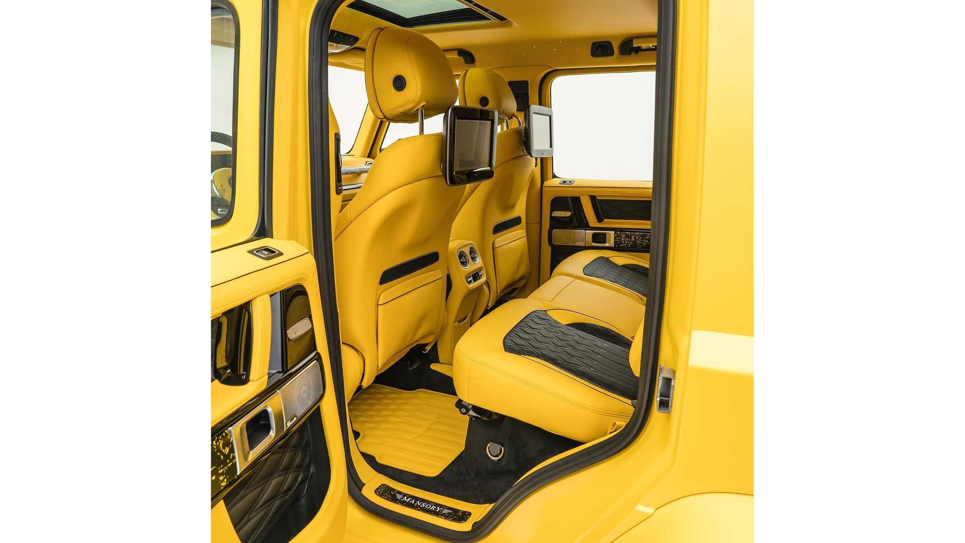 Проект Mansory Gronos выделяется ярко-желтым кузовом с множеством карбоновых элементов, включая капот, корпусы боковых зеркал, декоративные вставки в бамперах, отделку воздухозаборников, спойлер. Карбоном покрыт и кожух запасного колеса. Также тюнингованному Гелендвагену достались дополнительная «люстра» на крыше и сдвоенные ДХО в переднем бампере, окрашенные в цвет кузова массивные колесные арки и логотип Mansory в центре кастомной решетки радиатора.