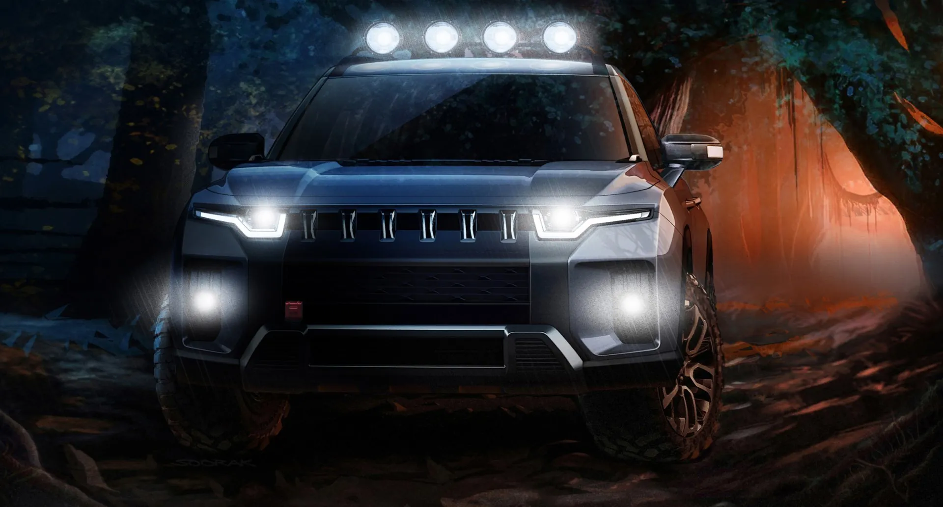 Зокрема, схожість зі знаменитим "родичем" проглядається в оформленні передньої частини кузова. У нього така сама радіаторна решітка з вертикальними прорізами, довгі горизонтальні покажчики поворотів і круглі блоки ближнього і дальнього світла. На даху кросовера встановлені чотири круглі ліхтарі.