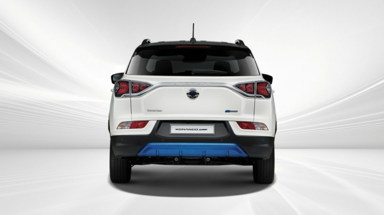 Зовнішність моделі повністю відповідає поточним тенденціям на ринку. Від паливної версії Korando електрокар відрізняється заглушкою на місці решітки радіатора, іншим бампером, лючком зарядки на правому крилі і синіми акцентами на кузові. Салон теж повністю повторює кросовер з ДВЗ. У його оснащення увійшла мультимедійна система з 8-дюймовим екраном, цифрова приладова панель, двозонний клімат-контроль, адаптивний круїз-контроль і набір систем допомоги водієві. Вартість новинки стартує від 36 000 євро.