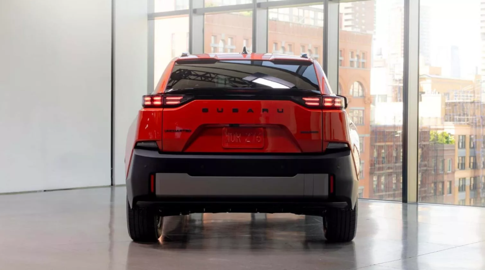 Фари і задні ліхтарі у нового електрокара Subaru вузькі і об’єднані між собою темними плашками. Передній бампер з широким повітрозабірником та накладкою виглядає дуже агресивно. Масивна накладка присутня і на задньому бампері. Можна відзначити невеликий подвійний спойлер на даху та ще один на задній двері. Колісні диски отримали аеродинамічний дизайн.
