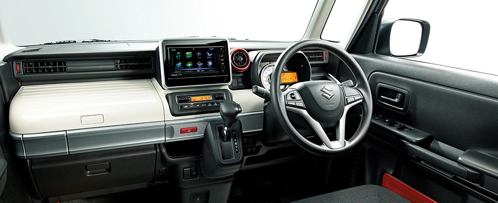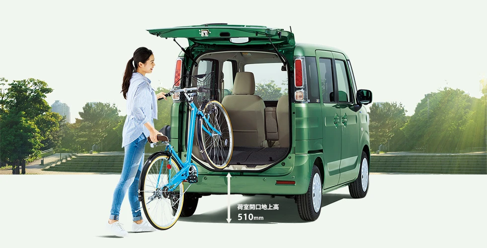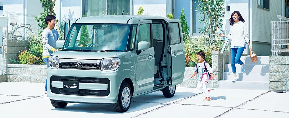 Модель Suzuki Spacia имеет длину всего 3,39 м. Это т.н. кей-кар, ведь оснащается мотором рабочим объемом всего 660 см куб. мощностью 52 л.с. Здесь используется микрогибридная технология. Между бензиновым двигателем и вариатором установлен электромотор на 2,7 кВт, который помогает при трогании и выполняет роль мощного генератора.