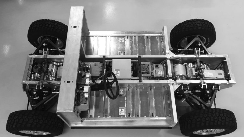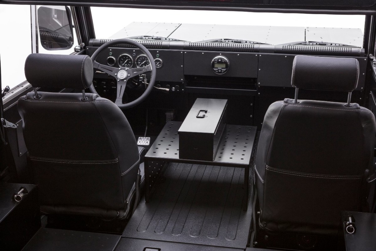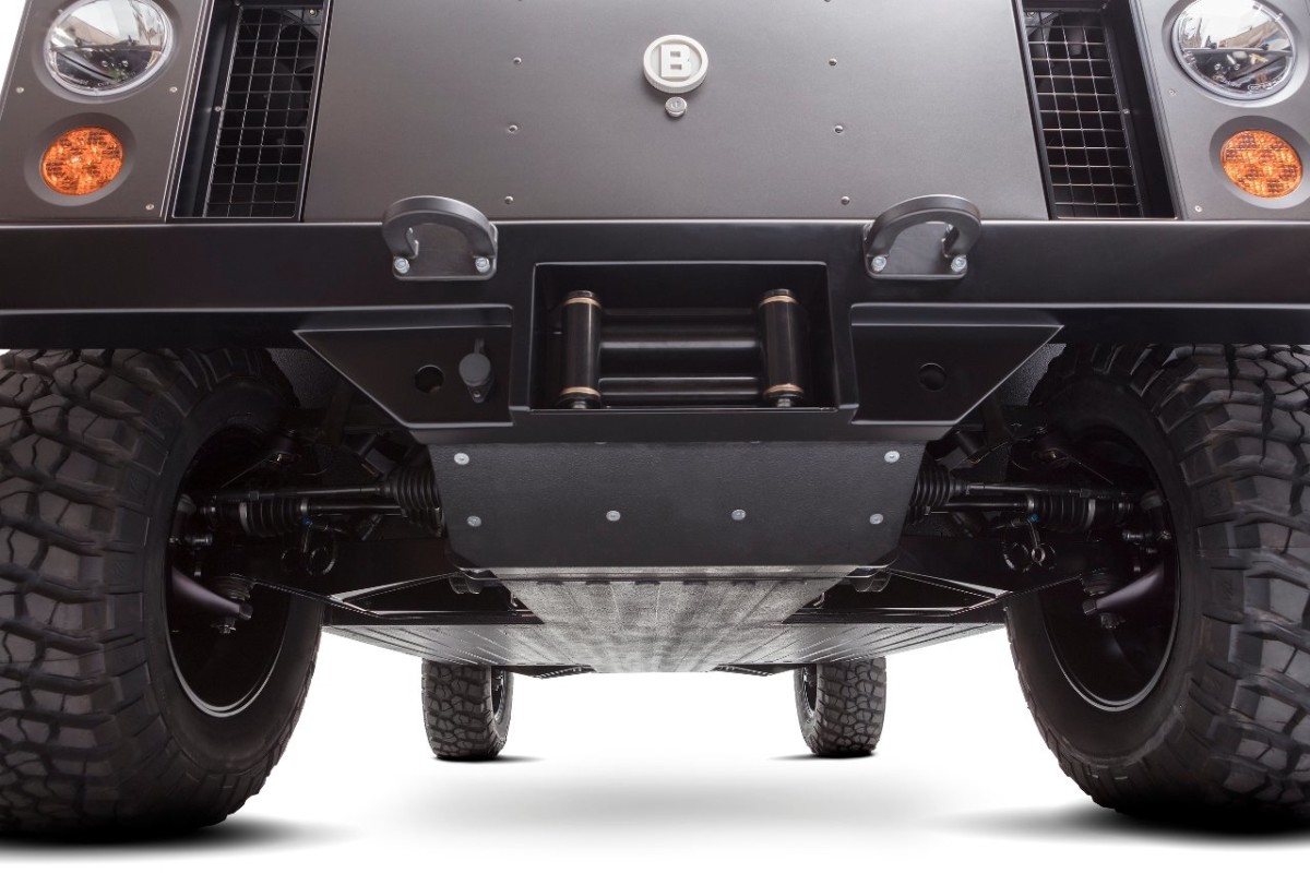 Однако утилитарная внешность в Bollinger B1 не главное. Оказывается, машина построена полностью алюминиевом шасси. Подвеска гидропневматическая, с регулировкой дорожного просвета в диапазоне 250 – 500 мм. Hummer может только позавидовать.