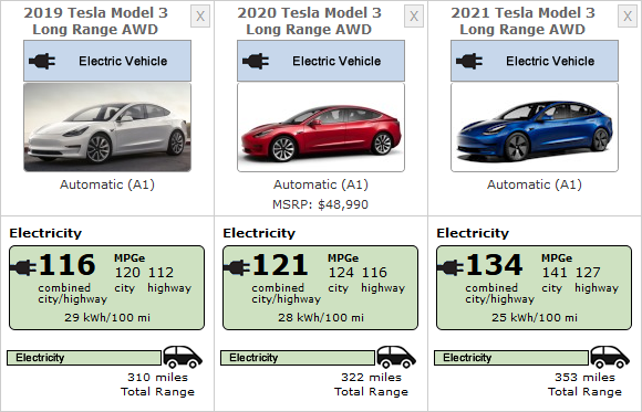 Обновленная версия седана Tesla Model 3 появилась в середине октября. Тогда компания предоставила предварительную информацию о запасе хода модели. Сейчас данные о новой Model 3 появились на официальном сайте агентства по охране окружающей среды США (EPA).
