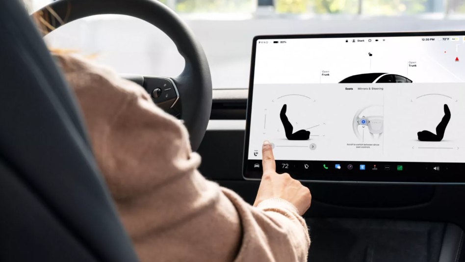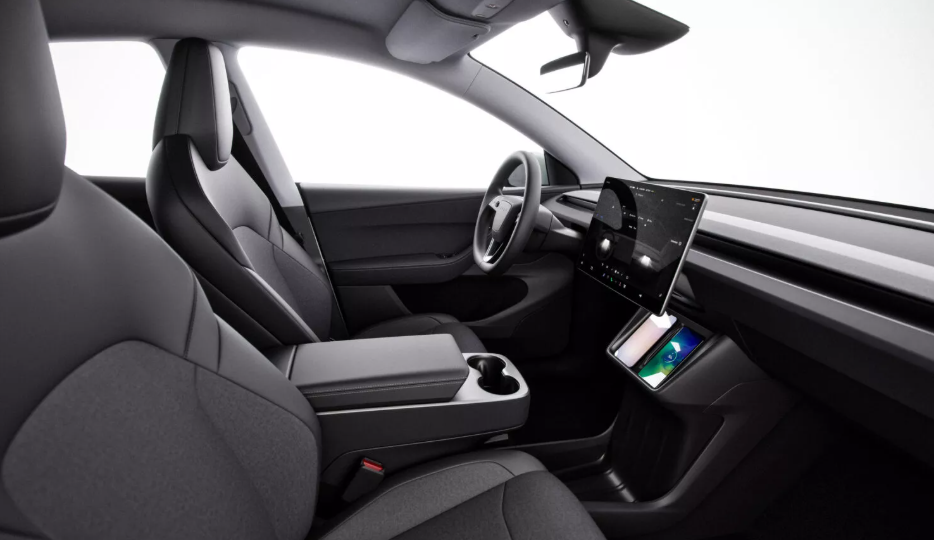 Також серед змін спрощений передній бампер, позбавлений світловідбивних елементів. Тепер вони інтегровані в фари. У Model Y Standard фірмові задні ліхтарі втратили сполучну смугу. В оснащенні салону цих електромобілів коригувань ще більше. Почнемо з того, що обробку з веганскої шкіри замінили на текстиль і штучну шкіру. Центральна консоль тепер являє собою великий відкритий відсік, що нагадує утилітарну компонування Cybertruck.