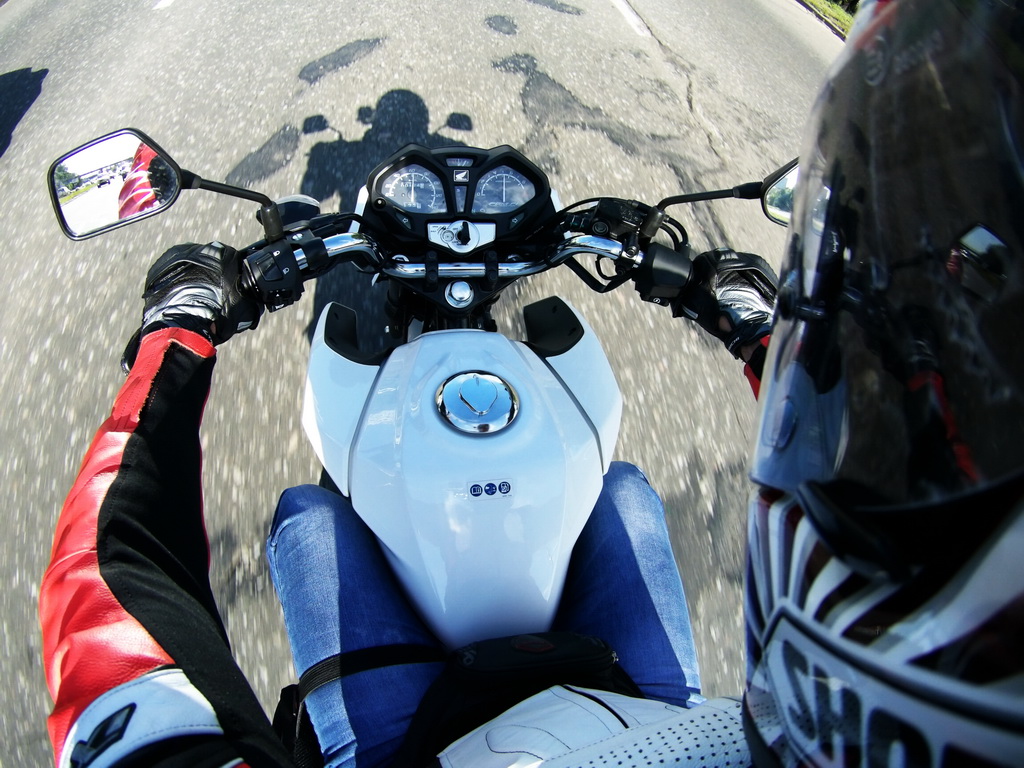 Сонце пригріває і в хромованій кришці бака відображаються хмарки, що біжать по небу – час пригод настав, але спочатку на заправку. Заливна ємність бака згідно з техпаспортом 13 літрів. В баку було пару літрів і до повного бака виходить лише 200 гривень, але навіть якщо порахувати заправку з нуля, то 300 гривень вам вистачить у середньому на 600 км, і це з урахуванням прогріву. Згоден, дика цифра, але витрата інжектора близько двох літрів на 100 км. Незвично відчувати, що ти відмахав дві сотні кілометрів змішаного циклу, а у тебе залишилося ще більше половини бака. Витрата палива в CB125F воістину вражає своєю економічністю, що дає можливість сприймати свободу повною мірою, а не від заправки до заправки.