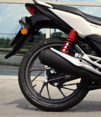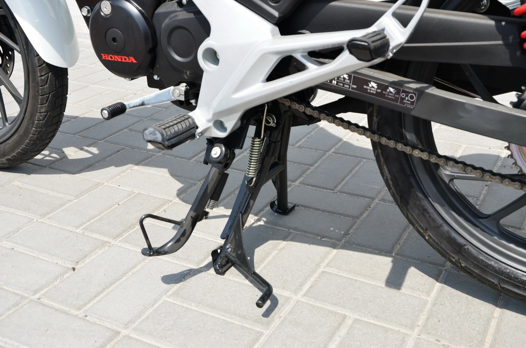 Передні гальма – дискові гідравлічні, діаметр диска 240 мм, працює в парі з двопоршневим супортом. Проте заднє гальмо – 130-мм барабанна установка, перевірена роками. Компанія Honda встановила гальмівну систему з запасом, і на мій погляд, у тандемі диск-супорт у CB125F взагалі немає конкурентів у своєму класі. Цей факт підтвердять чимало мотоциклістів. Протягом усього тест-драйву гальмівна система жодного разу не дала засумніватися в своїй ефективності.