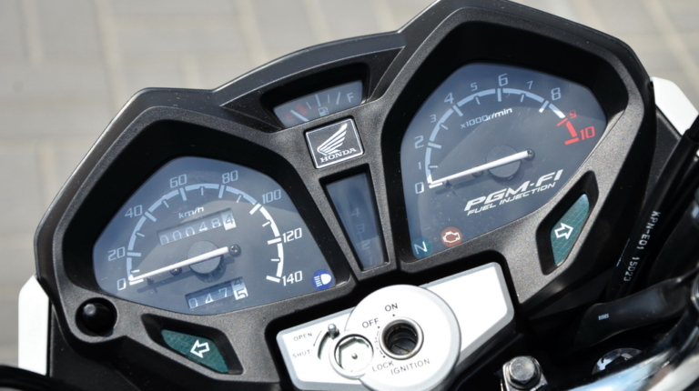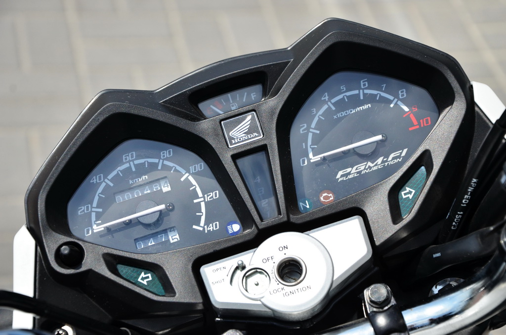 Вставляю ключ у замок запалювання і мотоцикл оживає, загудів бензонасос, спалахує і гасне “СНЕСК ENGINE”, горить зеленим “нейтраль”. Одразу про себе відзначаю, що під міський шум у попередньому СВ125Е крім вібрації ідентифікувати роботу двигуна було складно, а тут мотоцикл приємно бурчить і стрілка тахометра показує робочі обороти.