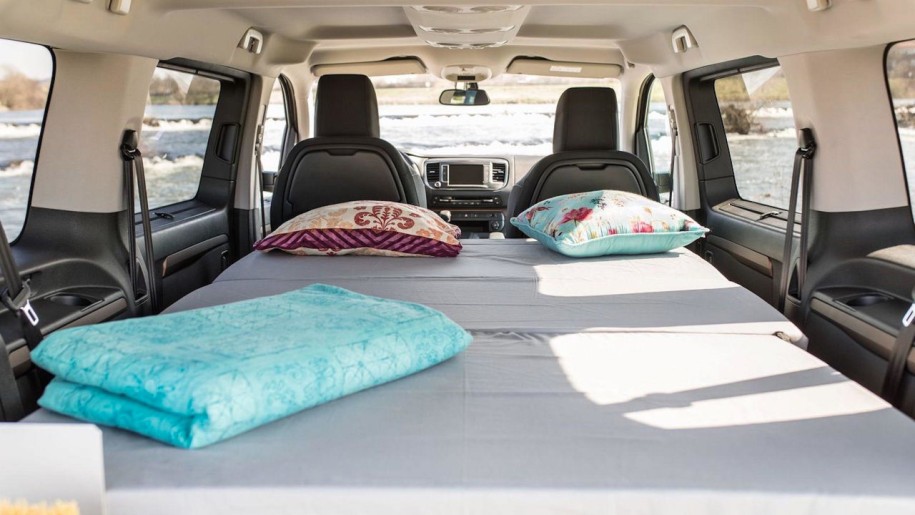 Мінівен для подорожей передбачає наявність міні-кухні з плитою і кухонним приладдям. Також передбачено мийку і ємність для води. Все це розташовується в розкладному боксі багажника. Є і спальні місця, організовані за допомогою каркасних матраців.