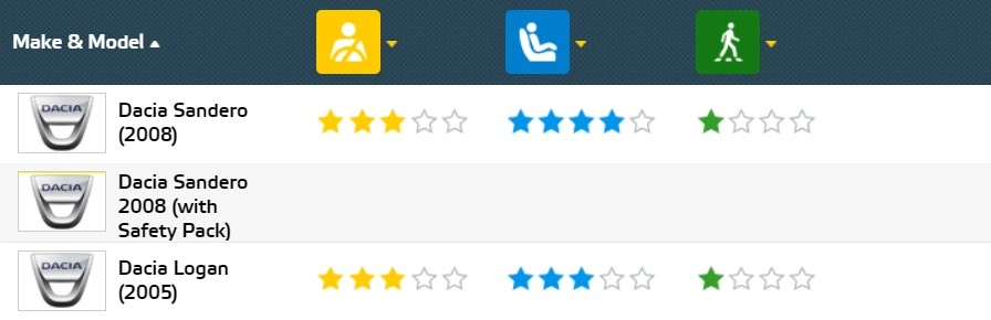 Такі результати більшою мірою пов'язані з тим, що тепер Euro NCAP оцінює роботу електронних асистентів активної безпеки, які практично недоступні дешевим автомобілям. Ранні покоління моделей справлялися з краш-тестами краще і отримували більші оцінки — можете порівняти вище.