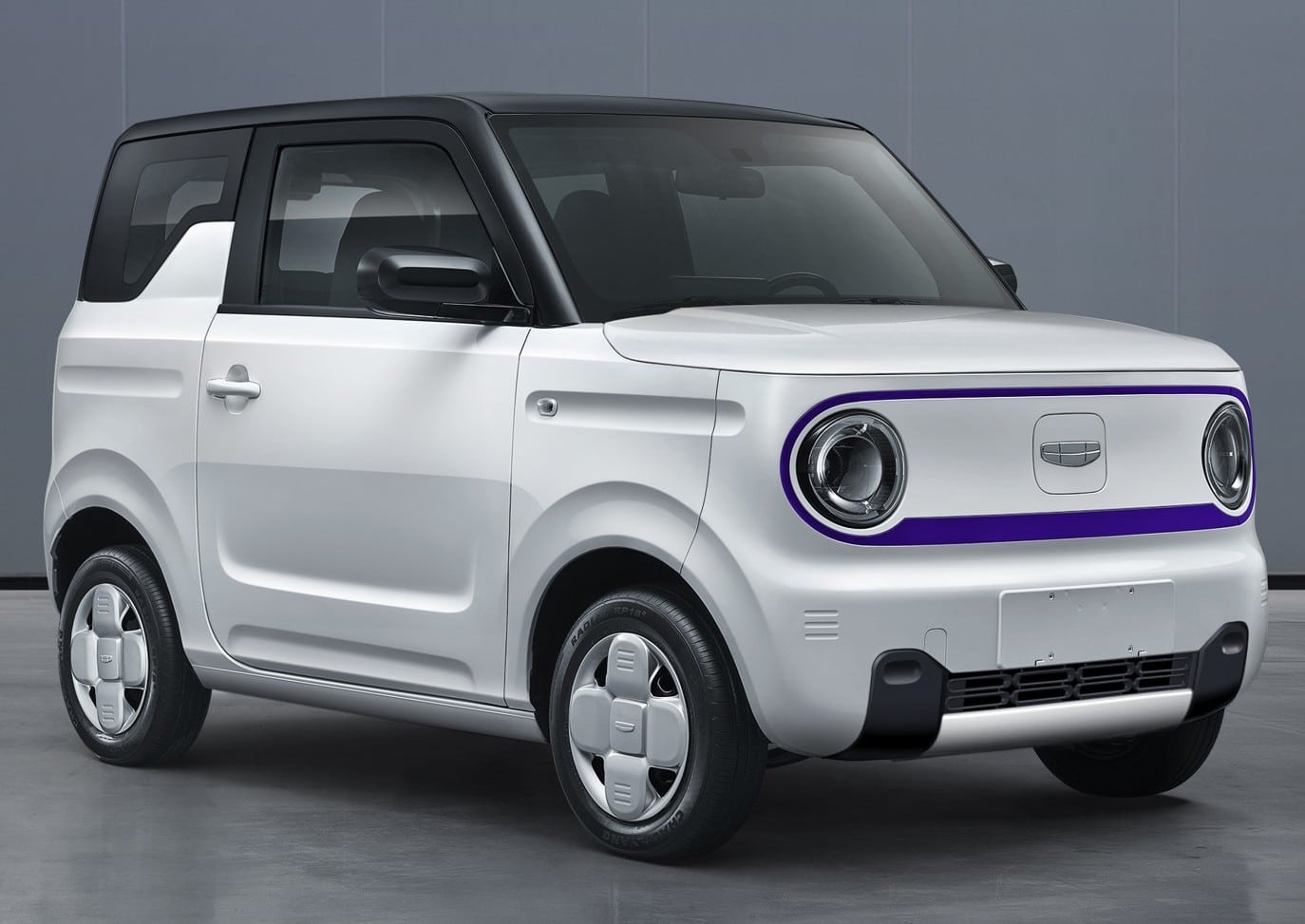 Клієнти зможуть обирати з кількох варіантів оформлення передньої панелі з логотипом Geely посередині, за яким захований зарядний порт. Зокрема, запропоновано кілька кольорів декоративної смужки, що поєднує круглі ретро-фари.