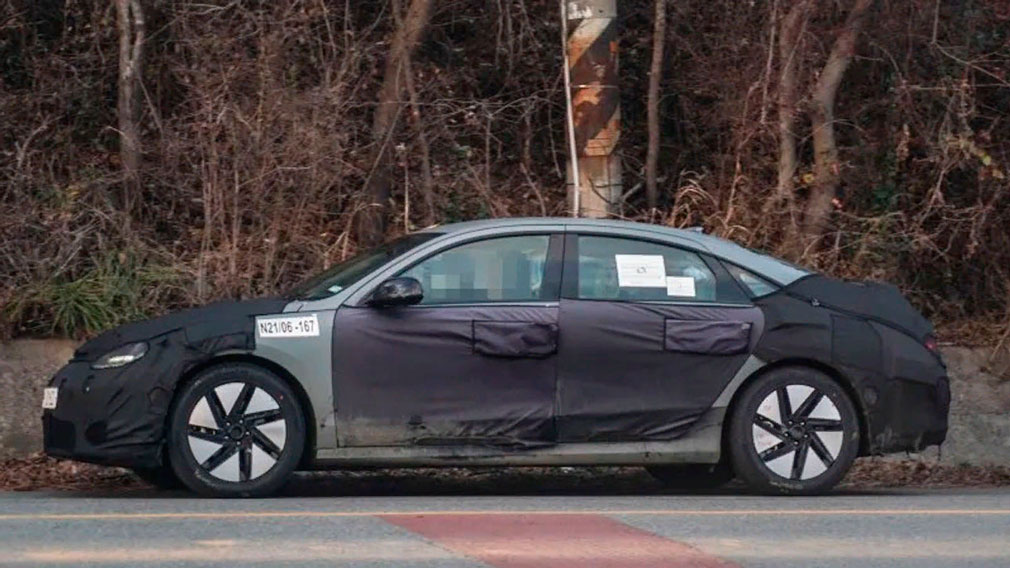 Черговою порцією знімків поділилося видання Korean Car Blog. Прототип седана Hyundai Ioniq 6 у версії P1 покритий камуфляжем, але вже не таким щільним, як раніше, тому габарити і основні елементи екстер’єру можна роздивитися. По довжині електрокар трохи менший за актуальний Hyundai Elantra. За рахунок того, що у цього варіанту інші бампери він буде на 20 мм довший, ніж базова версія моделі.