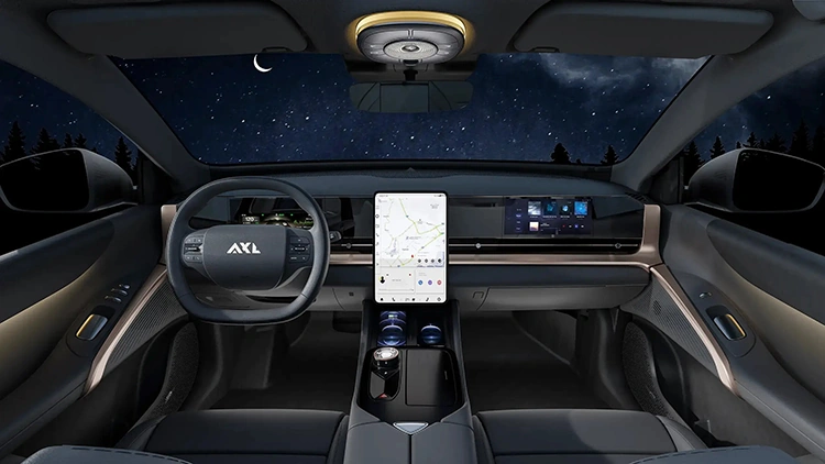Кросоверу обіцяно преміальне оздоблення інтер'єру, включаючи кришталевий селектор перемикання їздових режимів. Салон стандартно укомплектований трьома дисплеями, сидіннями з вентиляцією та підігрівом. Також заявлені панорамний скляний дах, преміальна аудіосистема та можливість дистанційного керування функціями автомобіля через програму для смартфона. Їздить AXL SharX-5 на 20,0-дюймових литих колісних дисках.