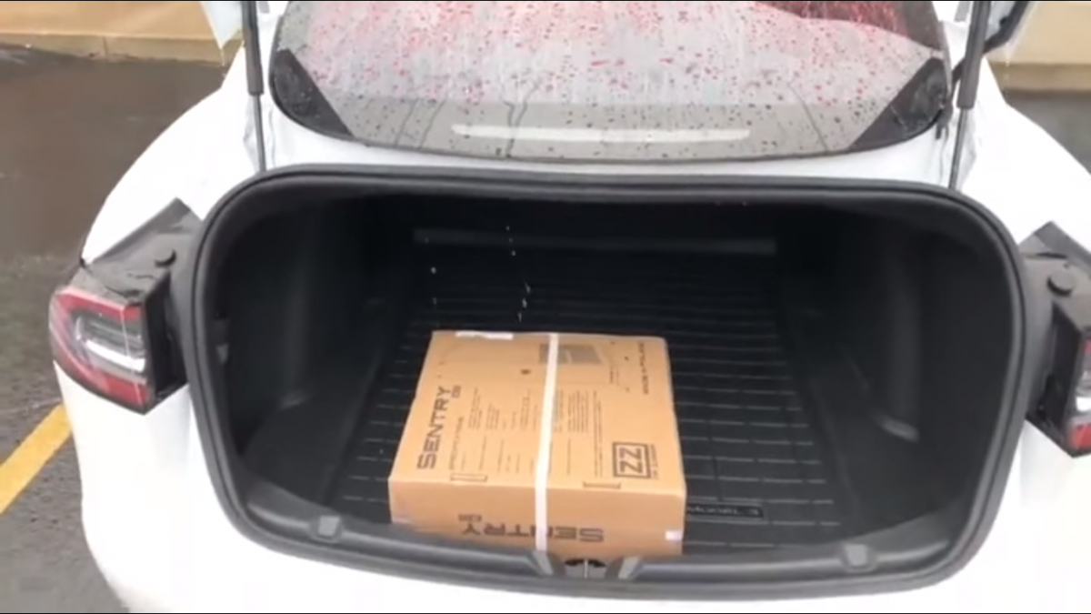 Оказывается, когда на улице идет дождь, а крышка багажника открыта, вся вода с крыши авто стекает прямиком в багажный отсек (надеемся, что Tesla учтет данную ошибку и примет меры по ее устранению). Вот как это выглядит: