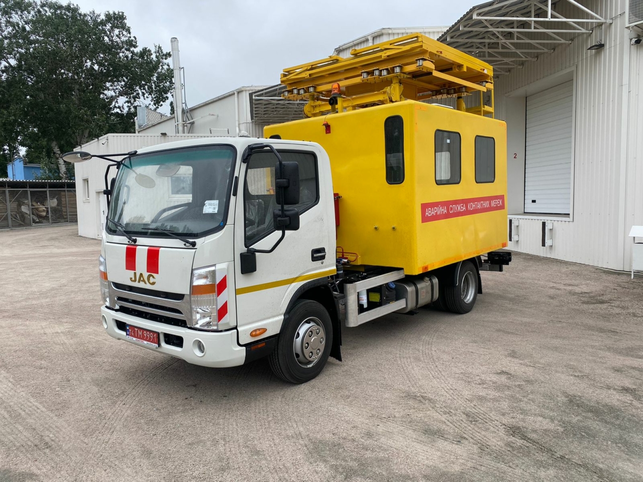 Кременчуцький завод комунальної техніки “АльфаТекс” виготовив для замовника з Кривого Рогу аварійно-відновлювальний автомобіль для обслуговування та ремонту контактних мереж. Модель АТ-70М побудована на шасі JAC N90.