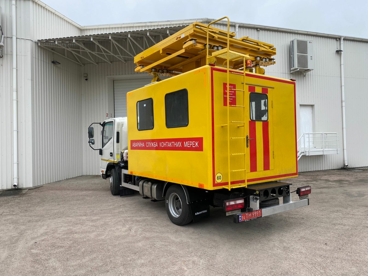 На даху встановлено гідравлічний підйомник з платформою вантажопідйомністю 300 кг та максимальною висотою підйому від землі до робочої зони електромонтера 6000 мм.