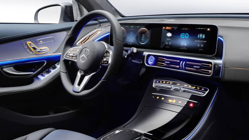 EQC 400 4Matic AMG Line отримав низку візуальних відмінностей. Серед них чорна решітка з хромованими елементами, глянцеві чорні вставки на кузові, корпуси дзеркал заднього виду, виконані в колір кузова, чорний дифузор з хромованим оздобленням і 19-дюймові легкосплавні колісні диски особливого сірого відтінку. У салоні встановлено спортивні сидіння AMG, нове кермове колесо у шкіряній оплітці, хромовані дверні ручки, килимки AMG і спортивні педалі з чорними гумовими вставками. Оздоблення салону виконане зі шкіри Artico і мікрофібри Dinamica.