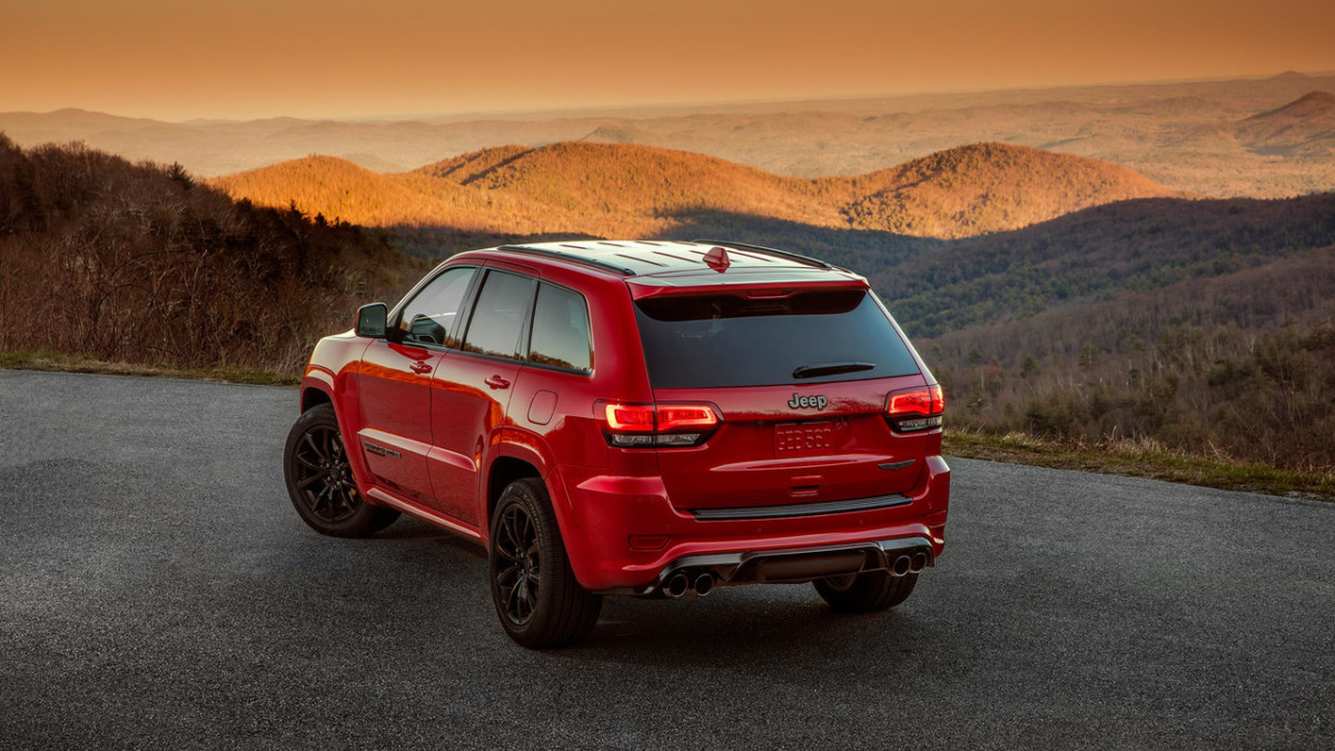 Відрізнити новий Jeep Grand Cherokee Trackhawk можна за опуклим капотом, величезним повітрозабірником у передньому бампері та чотирьом вихлопним трубам. Крім того, з’явилися 20-дюймові литі диски й аеродинамічний обвіс.