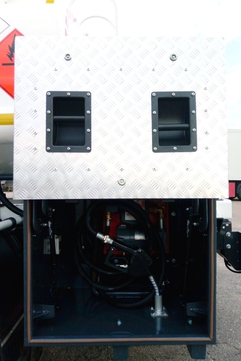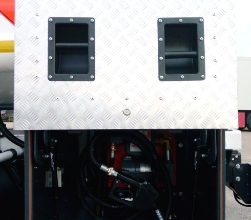 Зазначимо, що такі машини, оснащені двосекційною цистерною на 4 кубометри, “Техкомплект” виготовляє вже не перший рік. Однак у цьому випадку APZ-4 отримали відразу два модулі видачі та обліку палива, розташовані зліва та праворуч від основної надбудови.
