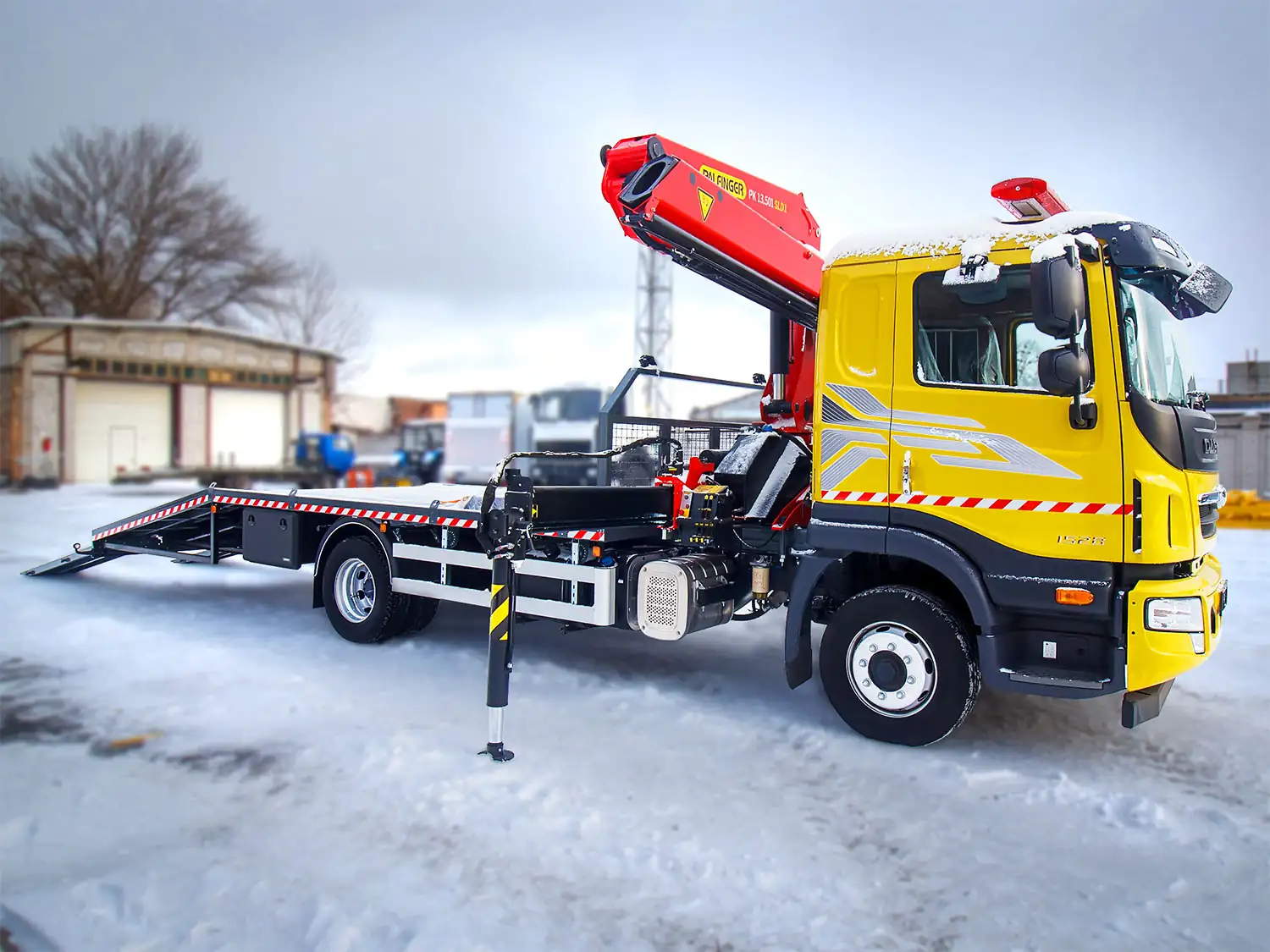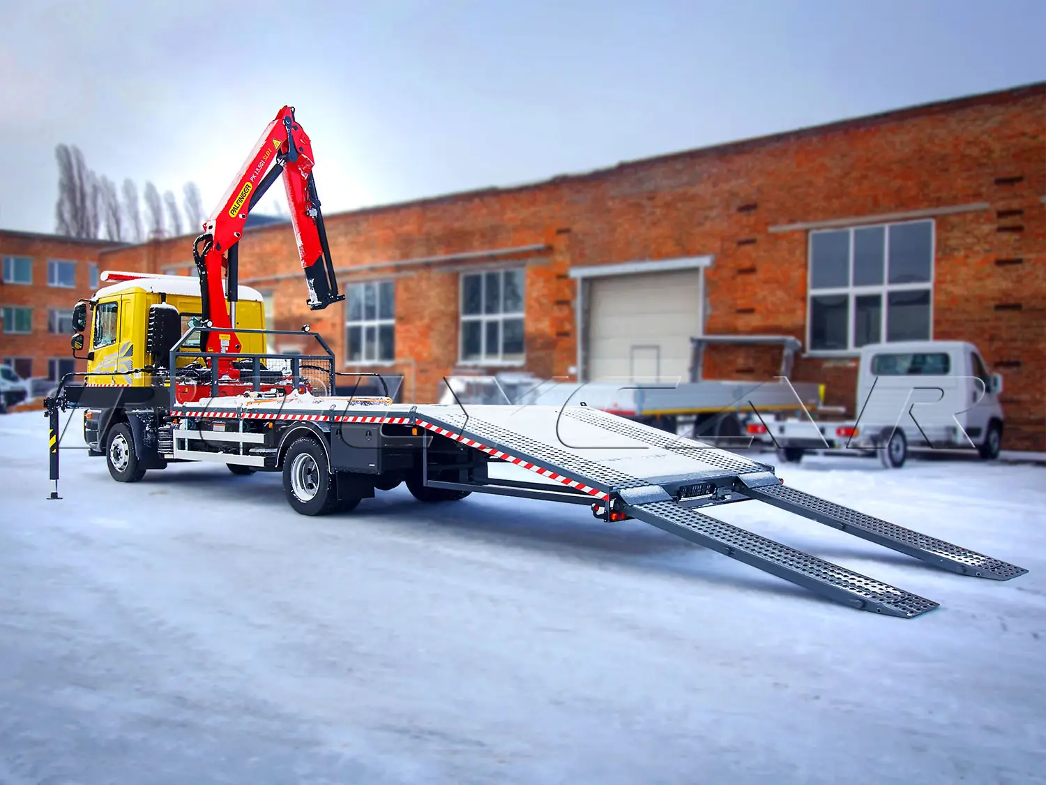 Машини укомплектовані спеціальною платформою з висувними трапами, яка здатна витримати автомобіль масою до 6200 кг. Тут же є лебідка з тяговим зусиллям 6700 кг. За кабіною також встановлено кран-маніпулятор Palfinger PK 13.501 SLD, який має максимальну вантажопідйомність на мінімальному вильоті ті ж 6200 кг (на максимальному вильоті в 8 м - 1480 кг).