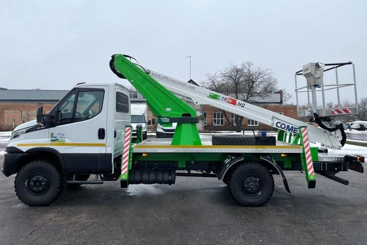 Що ж стосується новинки, то на IVECO Daily 55S18H встановили італійський автогідропідйомник Comet 19-2-14 HQ. Монтажна зварна рама і висувні опори (аутригери) виготовлені на підприємстві «Техкомплект». Важливо, що для цього використано надміцну шведську сталь Ssab Strenx 700 МС.
