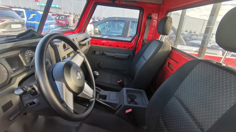 Напомним, что BAW Warrior имеет полную массу 3955 кг, поэтому для его управления нужны уже права категории «С». Машина комплектуется 2,3-литровым турбодизелем YCY24140-60A (Евро 6) мощностью 140 л. с. и максимальным крутящим моментом 400 Нм при 1400 – 2000 об/мин. Коробка передач – механическая, 5-ступенчатая. Автомобиль оснащен подключаемым передним приводом и имеет три режимы работы межосевого дифференциала: 2H, 4H и 4L.