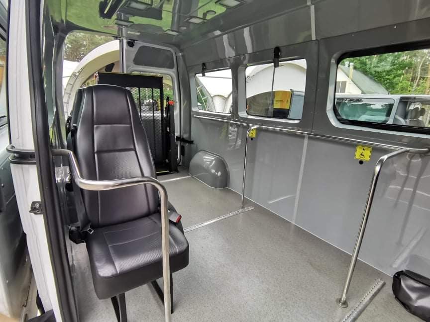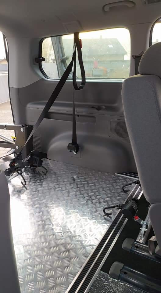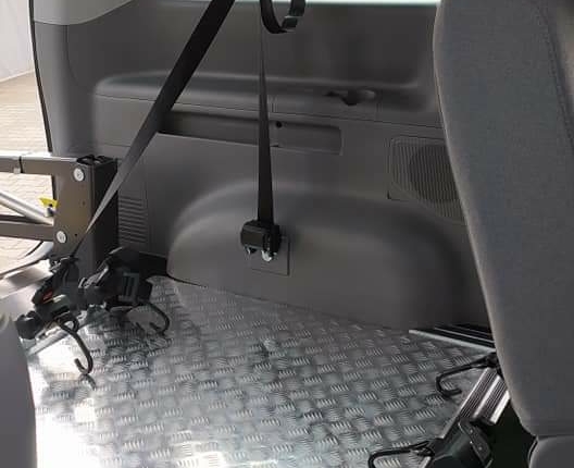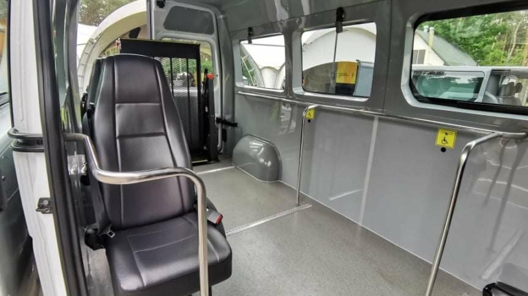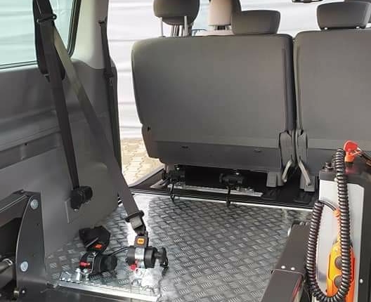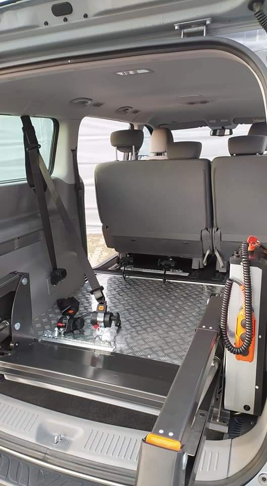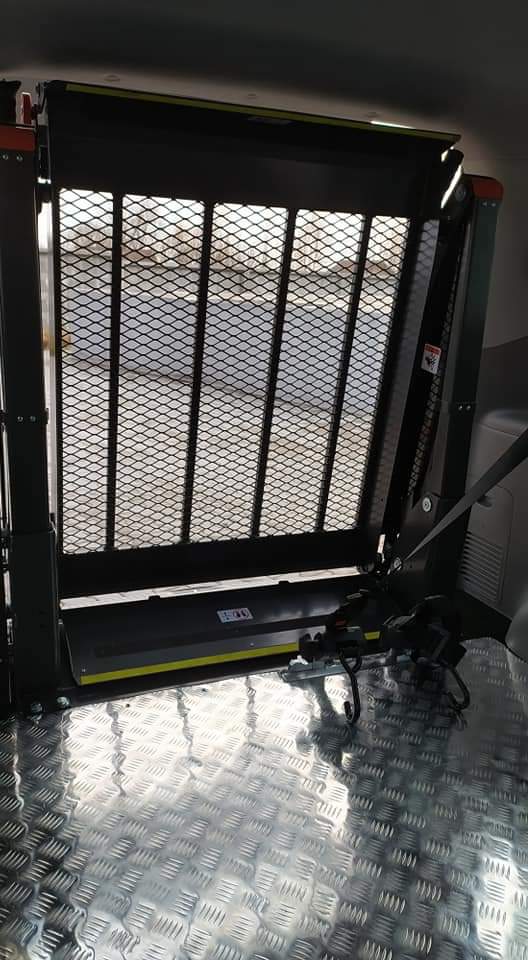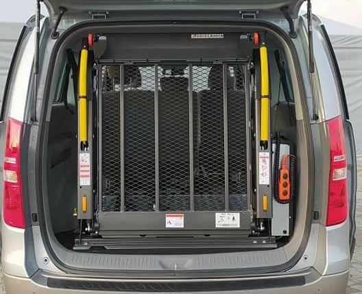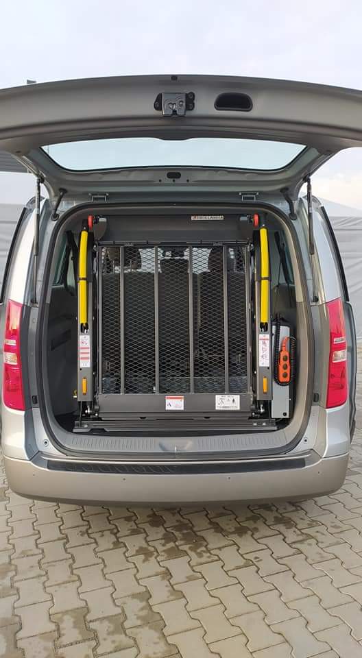У цьому випадку в 8-місному салоні Hyundai H1 демонтували третій ряд сидінь, а замість нього встановили гідроліфт Dhollandia вантажопідйомністю 350 кг.
