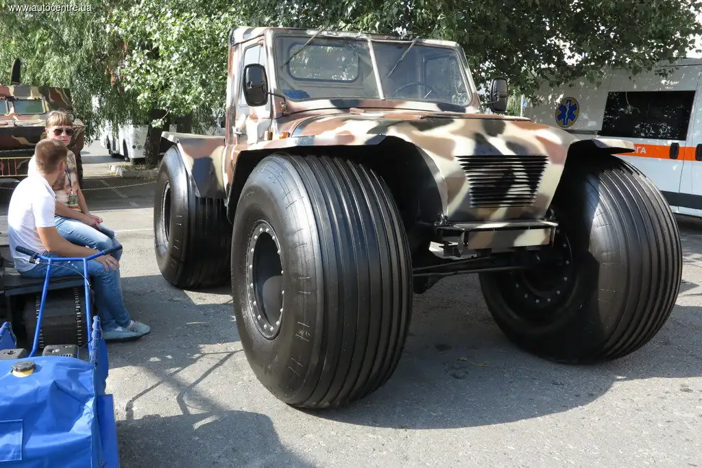 Теперь же завод решил освоить новый вид продукции, взявшись за выпуск малогабаритных гусеничных и колесных снегоболотоходов грузоподъемностью 250 – 500 кг - для лесотехнического и охотничьего секторов. На выставке в Киеве предприятие показало вездеход на шинах сверхнизкого давления. Машина построена на узлах и агрегатах УАЗ-3151. Тентованный кузов переделали в двухместный, с жесткой крышей. Позади кабины можно установить небольшой кузов. Примечательно, что шины-«дутики» с надписью «Трэкол» изготовлены известным отечественным производителем «Днепрошина». Такая обувка до недавнего времени поставлялась на российские вездеходы с одноименным названием. Украинский вездеход может также плавать - со скоростью 2-3 км/ч.