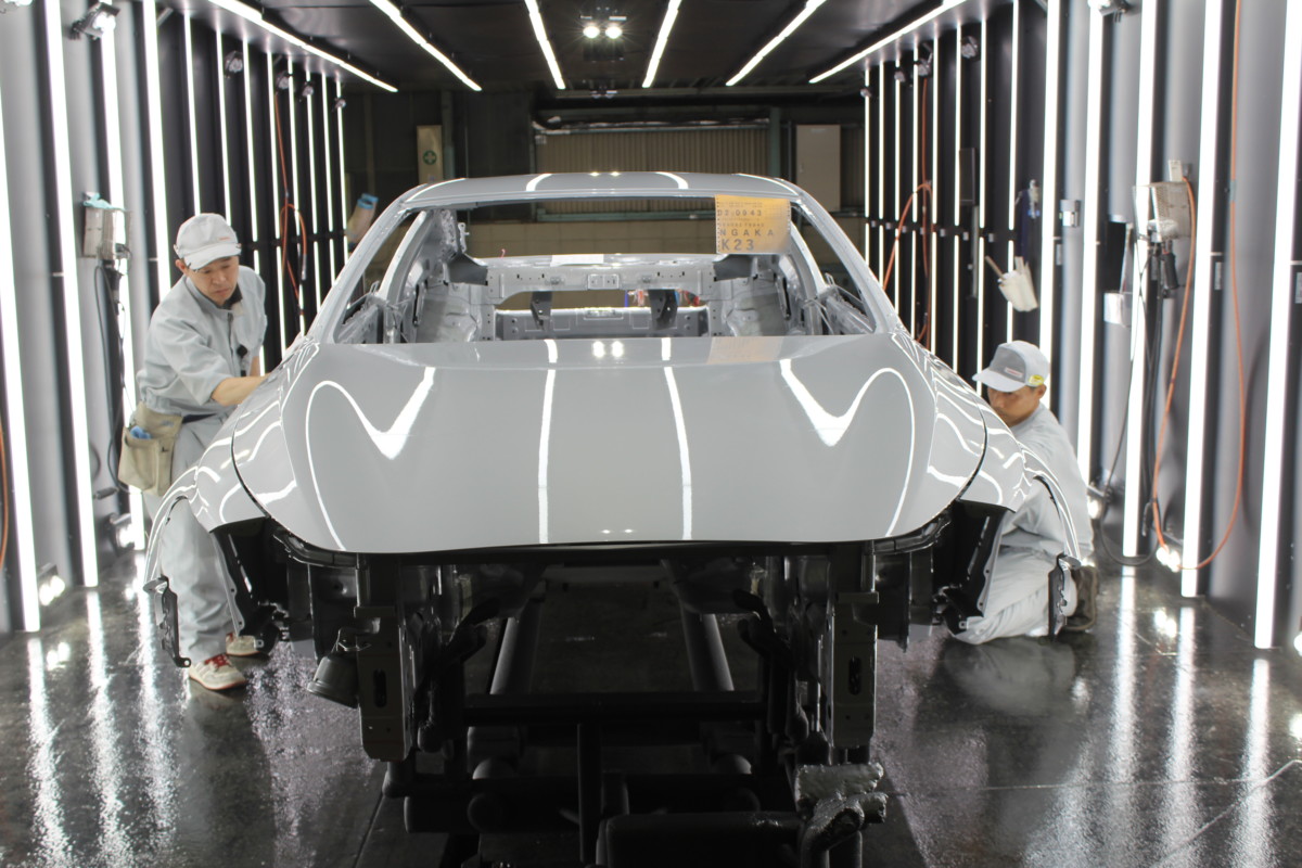 Ще однією важливою зміною на заводі в Точігі стало створення спеціальної фарбувальної камери для нанесення нового кольору Dynamic Sandstone Red на кузов Q60. Глянцевий глибокий червоний відтінок потребував нової архітектури фарбувального цеху – поєднання механічної та ручної обробки. У розробці виробничого процесу взяли участь провідні експерти Infiniti. Нова формула покриття дала змогу працівникам фарбувального цеху точніше регулювати товщину і якість шару. Dynamic Sandstone Red – результат випробування сотень варіантів формули фарби і способів нанесення.
