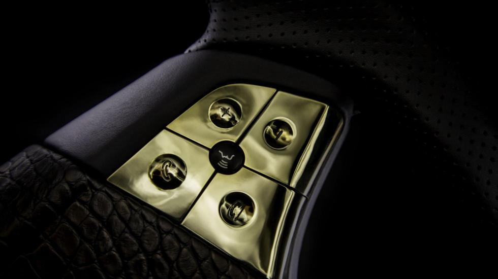 Така вражаюча ціна керма пояснюється використанням дорогоцінного каміння і металів. Зокрема, кнопки оздоблені 14-каратним золотом, а пластини – 18-каратним. Логотип марки Dartz – з білого золота, плюс інкрустація 300 діамантами і двома рубінами.
